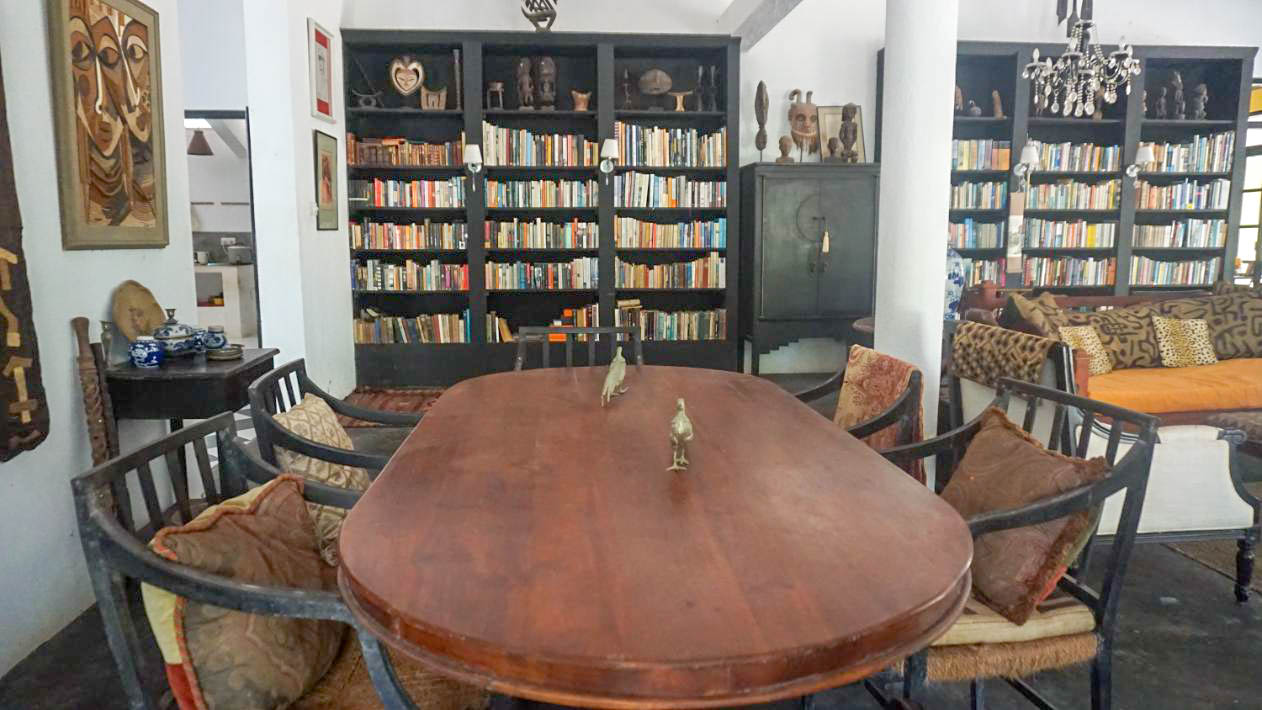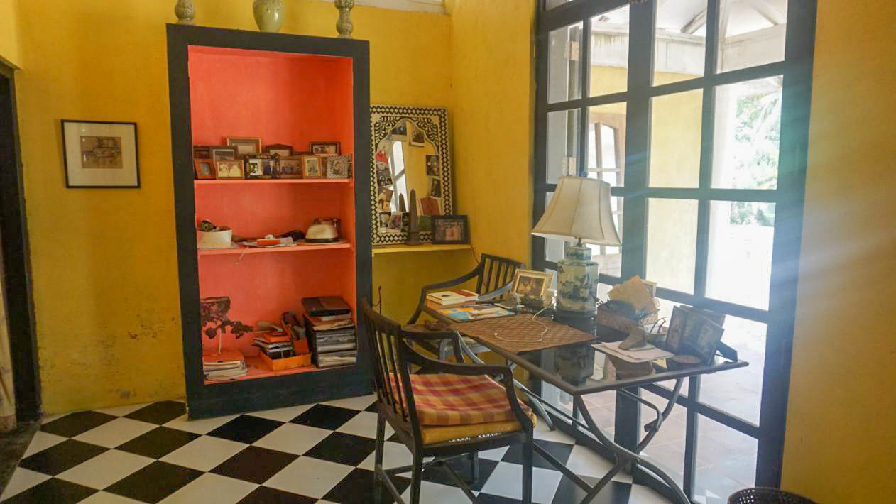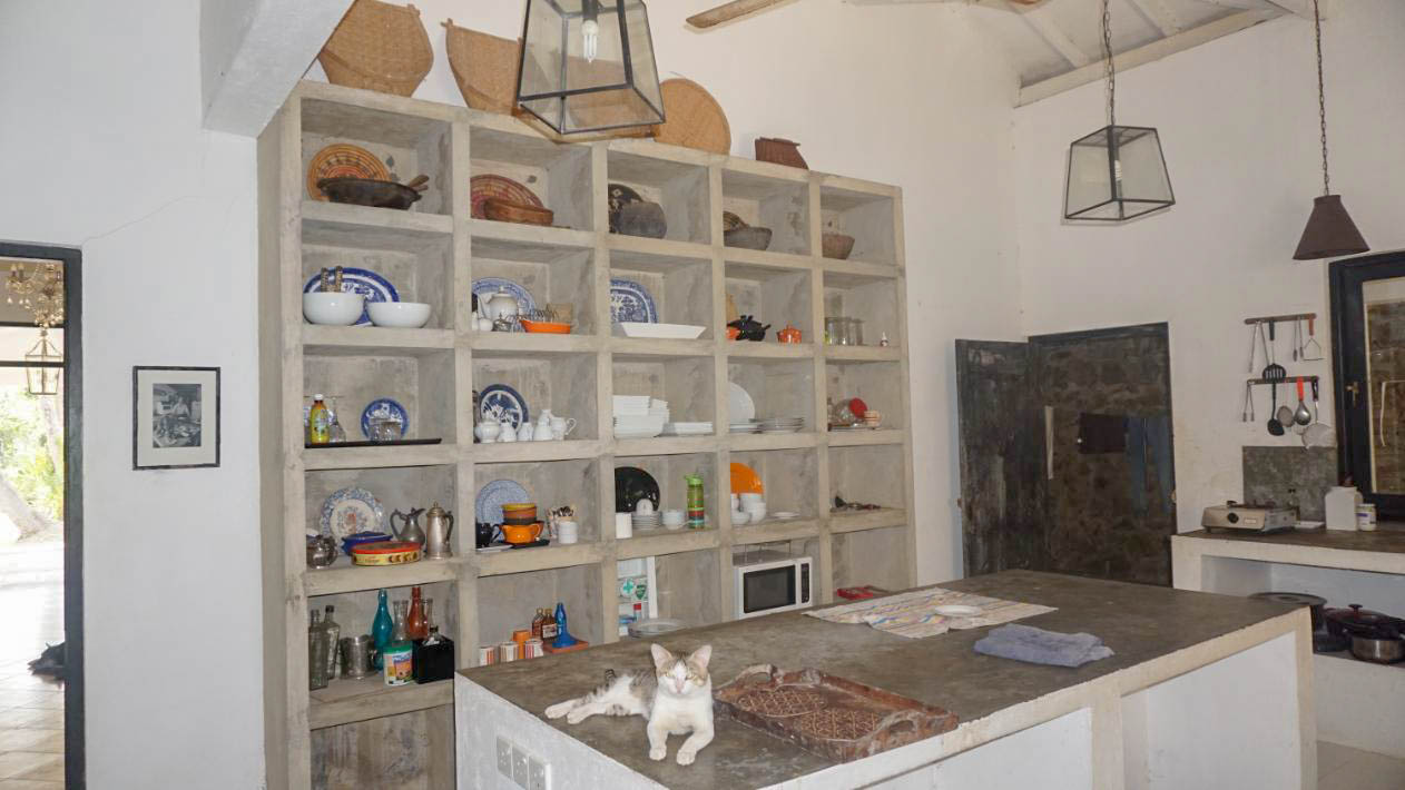 The main house offers generous living spaces, including a large central living area, kitchen, study, and master bedroom with an open-air bathroom. There are also separate staff quarters that could be converted into an additional bedroom or guest space.