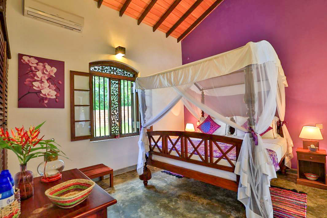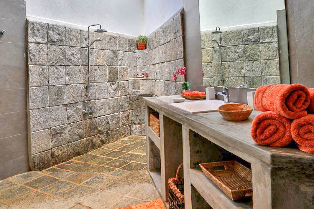 • 3 bedrooms with open-air bathrooms, A/C, fan, carved wooden windows