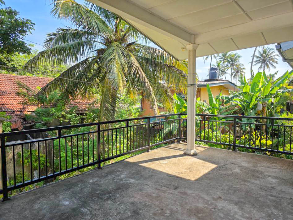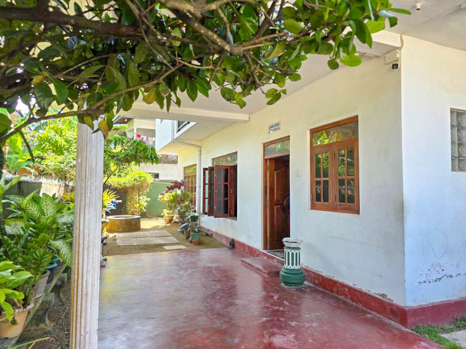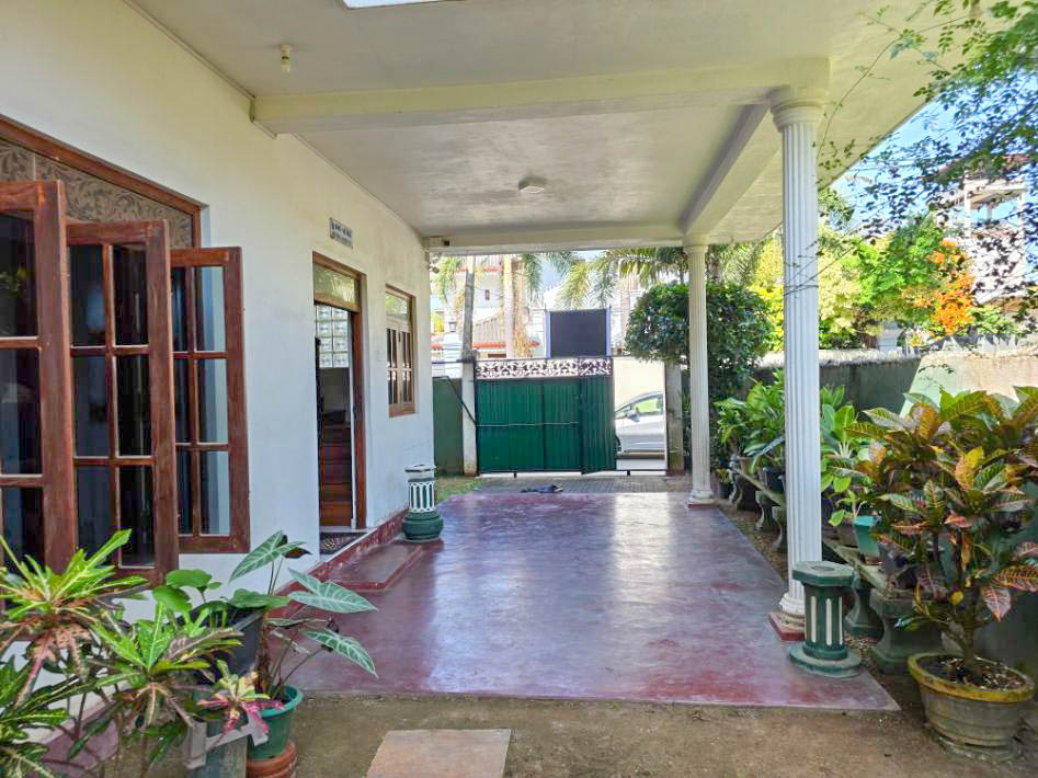 This 8.5-perch property features a two-story house with 4 bedrooms, 2 bathrooms, a living and dining area, kitchen, and a veranda. The land is secured with a wall and gate, and the house has electricity and city water connections.