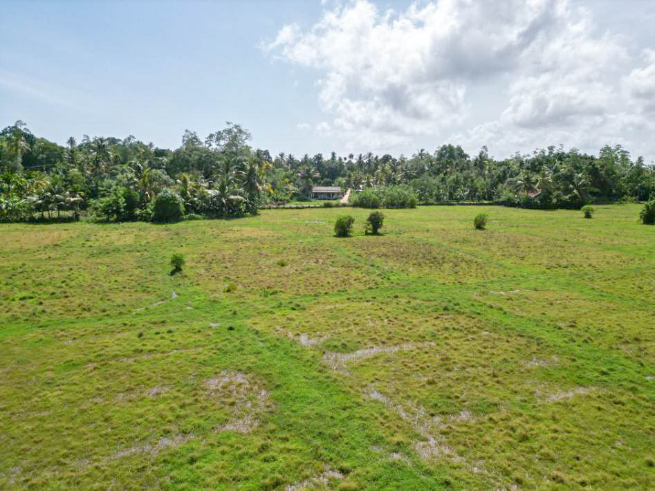 A 117-perch sizable piece of bare land in Midigama, offering a quiet environment and scenic paddy views. The land is dotted with mature trees including coconut, mango, jackfruit, mahogany, and cashew nut trees, providing natural shade and charm.