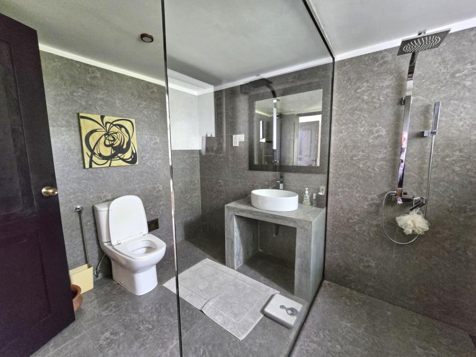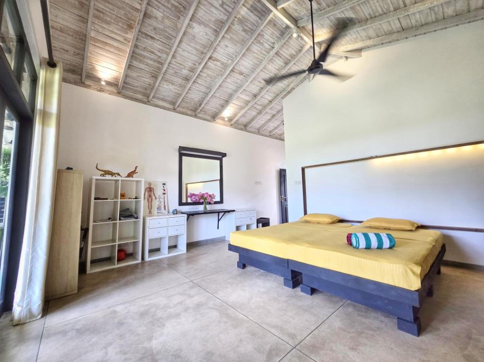 The villa invites you with an expansive indoor living area, designed for relaxation and entertaining alike. With an elegant dining space, and cozy sofa nook, and a designated office area. Attached to the living area is the fully equipped, spacious kitchen, perfect for culinary enthusiasts ready to whip up delicious island-inspired dishes.